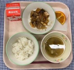 今日の給食献立は、白ごはん・魚のレモン柚庵焼き・白菜のおかか煮・すりわり汁・牛乳でした。
