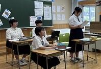 9年生は、宝立小中学校の9年生とオンラインで国語の授業をしました。宝立小中学校の生徒からは、多様な意見が聞かれました。協働的な学びができました。また、8年生はローテーション道徳でした。教頭先生と「ふるさとが育む道徳石川」で学習をしていました。いつもとは違う環境での学習は、学びが広がったり、深まったり、集中できたりします。