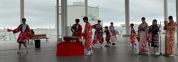 先週、6月22日(日)に金沢港クルーズターミナルにおいて、大谷公民館の伝承太鼓クラブの演奏が行われました。震災前まで大谷小中学校に在籍し、伝承太鼓クラブで一緒に練習をしていた児童生徒も参加し、力強い演奏を披露しました。久しぶりに集まった仲間との演奏を楽しみ、聞いていた方々にも感動を与える演奏となりました。