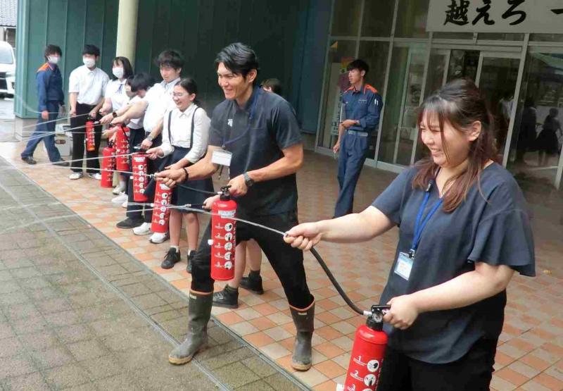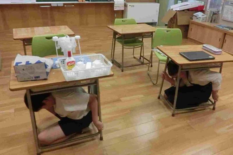 地震が発生したのち火災が発生する想定で避難訓練を行いました。地震が起きたときのシェイクアウト訓練では、みんな頭を守り、しゃがむ、かくれる、じっとする」という安全行動を行うことができました。また、火災の避難訓練では「おはしも」を守り素早く避難することができました。その後、消防署の方から消火器の使い方を学び、実際に訓練を行いました。常にいざという時に備えたいです。