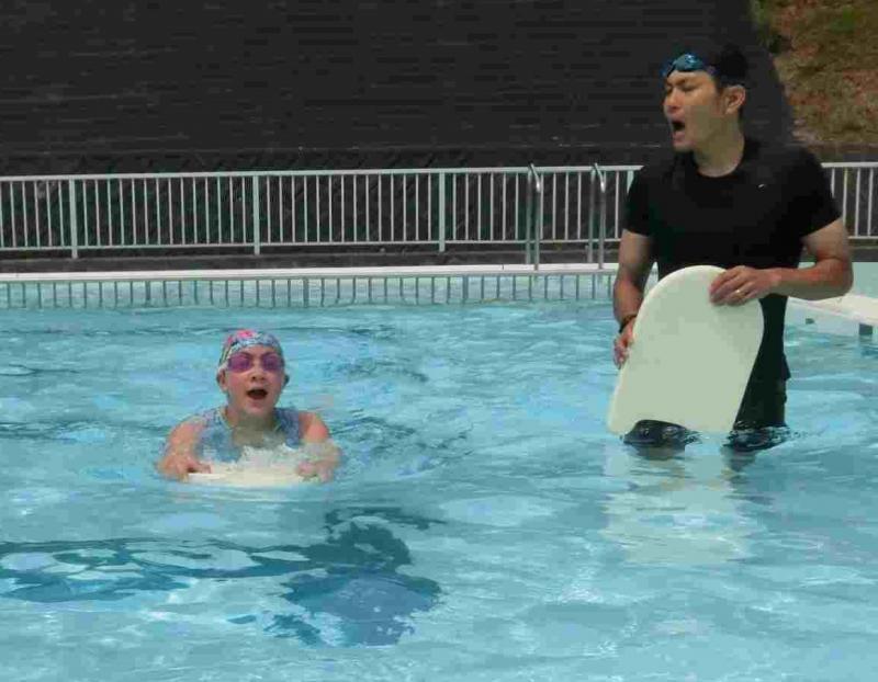 今年度初の水泳の授業が飯田小学校のプールでありました。とても良いお天気で、プールの水が気持ちがよい絶好の日になりました。6年生の日頃の行いが良いからでしょう。直小学校の5・6年生と一緒に楽しく授業ができました。6年生は「今日のプールでは息つぎの技を習得しました。次はもっと良い息つぎの方法を見つけたいです。」「今日のプールでは顔を長く水につけられるようになりました。とても楽しくて、プールの時間が短く感じました。」と振り返っていました。