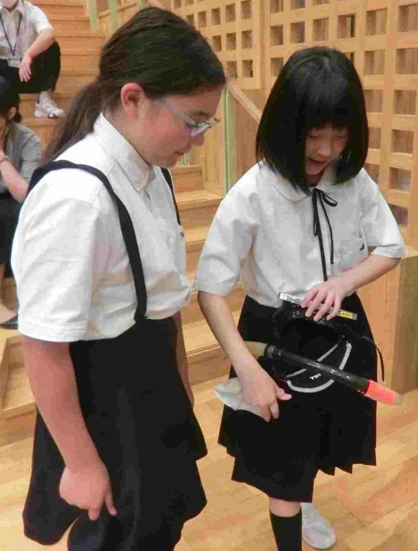 ライアーという竪琴を演奏してくださる、リラバンディアというグループの方が来てくださいました。パッヘルベルのカノンなどなじみのある曲やイメージしたものを即興で演奏するクイズなどさまざまな曲を演奏してくださいました。クイズでは、同じ曲を聴いてもイメージするものが違っていて面白かったですし、大谷小中の児童生徒も先生方もみんな想像力が豊かだなということがわかりました。みんなで「小さな世界」を歌ったことも楽しかったです。演奏後にライアーを触らせてもらいました。楽しい時間をありがとうございました。