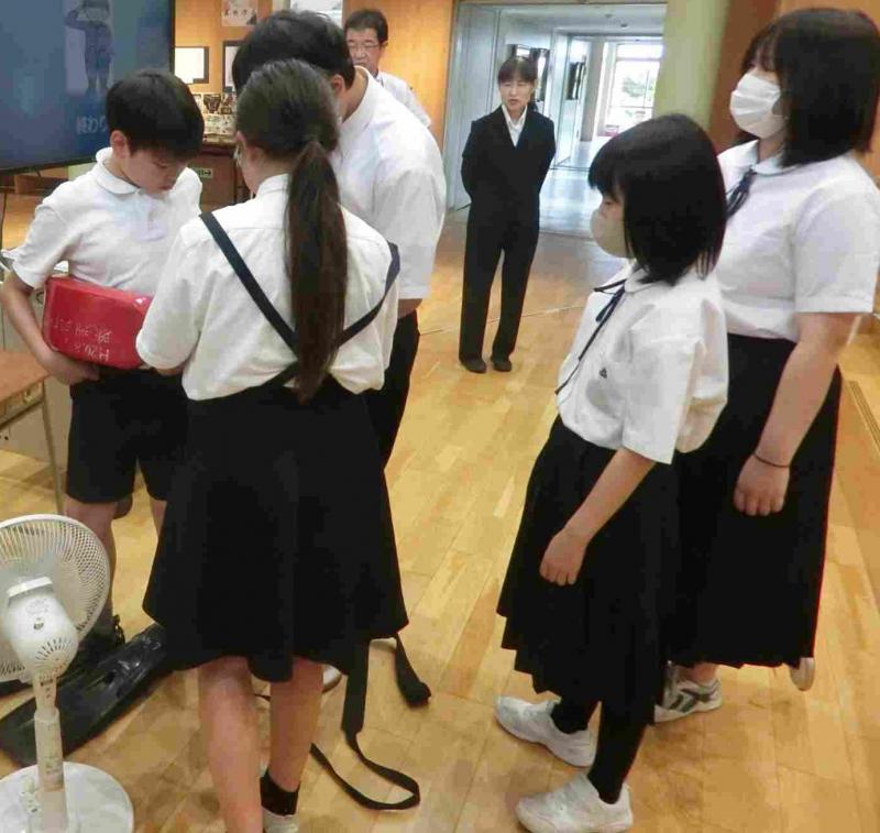 明日から夏休みです。大谷川も海も近くにある児童生徒が安全に楽しく夏休みを過ごせるように、珠洲消防署大谷分署の方々に来ていただき、水難事故防止講座を行いました。離岸流の起こる原因や離岸流に流された時の対処法について学びました。また、命を守るポイントとして「立ち入り禁止の場所には近づかない」「体調が悪いときには海に入らない」「複数で行動する」「準備体操をする」ことを教えていただきました。さらに、ライフジャケットなどを試着させていただきました。感想には「夏休みに海に入ることがあると思うので、ちゃんと準備運動をしようと思います。」「忘れかけていたことも復習出来て、たくさんのことが分かった。水の怖さが分かる講座でした。」「訓練をちゃんとして、救助するときにパニックにならない消防士さんはすごいなと思った。」というものがありました。