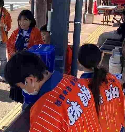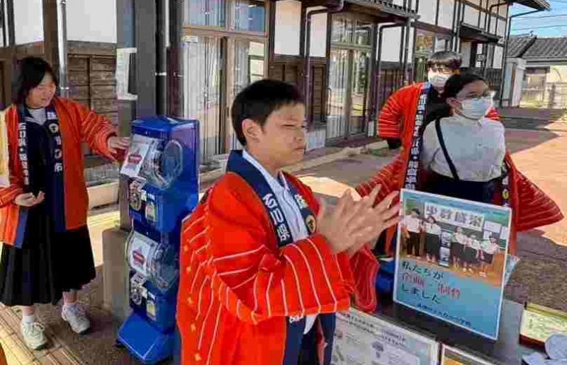 いよいよ大谷ガチャを販売する日が来ました。7年生と8年生の発案により、5月から取り組み始めた企画でした。6年生~9年生で力を合わせて制作しました。珠洲市の親子議会では9年生が堂々と取組を発表し、市長さんから「まずは、珠洲市の道の駅に置いてはどうでしょうか」という答弁をいただきました。そして、本日道の駅「すずなり」に置いて販売することができました。のぼり旗を準備し、珠洲市の観光交流課から貸していただいたそろいの法被を着て、対面で販売しました。はじめは緊張してなかなか声が出なかったのですが、だんだんと買ってくれた方とコミュニケーションをとることができるようになりました。「ニュースを見てかほくから買いに来ました。」という方など、遠くからも買いに来てくださり、とても感謝しています。約70個のガチャは1時間30分で完売いたしました。達成感のある時間でした。