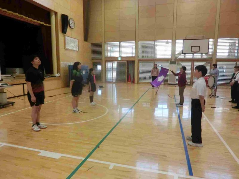 16日(日)は、いよいよ全能登大会です。県大会出場をかけた大切な大会となります。後期課程の3人の力になりたいと、今日は前期課程の2人が激励会をしました。前期課程の2人は、どうすればよりよい激励会になるかを話し合い、練習を重ねてきました。「3・3・7拍子に歌詞をつけて、3人それぞれを応援する」「一緒に練習してきたけれど、地震のために大谷を離れた児童生徒の応援メッセージ動画を流す」など工夫した内容でした。