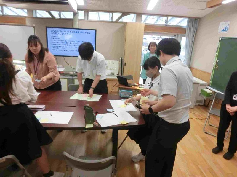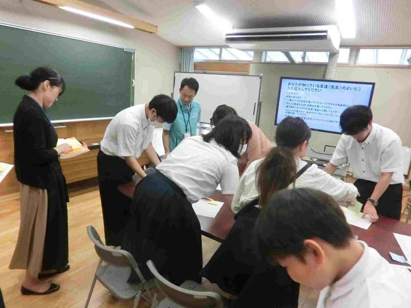 スクールカウンセラーの方々に来ていただき、心のサポート授業を行いました。今回は、これまでの「ストレスマネジメント授業」の復習をし、「こころと体の健康チェックシート」を行いました。そのあと、自分の良いところについての授業を行いました。「ジョハリの窓」というワークシートを使い、自分が知っている自分の良いところにういて書き込み、次に、自分が知っている友達の良いところについて付箋に書き、それを友達に渡しました。最後に付箋やワークシートに書き込んだことを参考に「これからやってみたいこと」や「ちょっと進んでみたい方向など」を書きました。友達や先生からもらった良いところを書いた付箋がいっぱいになったプリントを見て「このプリントを宝物にします」という児童生徒もいました。