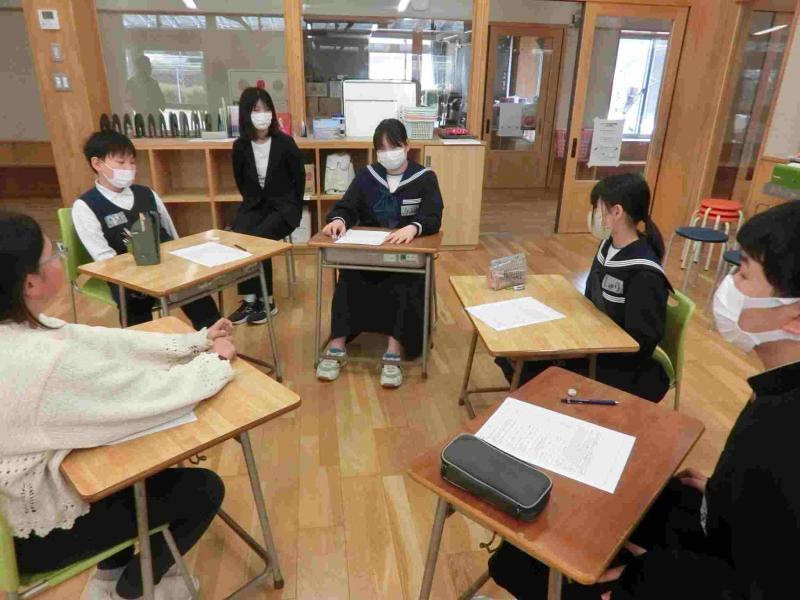 第1回のビブリオバトルが開催されました。これは、「本を紹介し合うことで、いろんなジャンルの本をたくさん読むきっかけになる。」「意見発表をしたり、意見交換ができる場となる。」ということをめあてに行っています。今回は2人の生徒から本の紹介がありました。「映画と比較して発表していてよかったです。」「具体的にページを見せて紹介していてわかりやすかったです。」という感想がありました。バトルということで、「どちらの本を読みたいと思ったか」投票しました。結果は同点で引き分けでした。次回のビブリオバトルが楽しみです。
