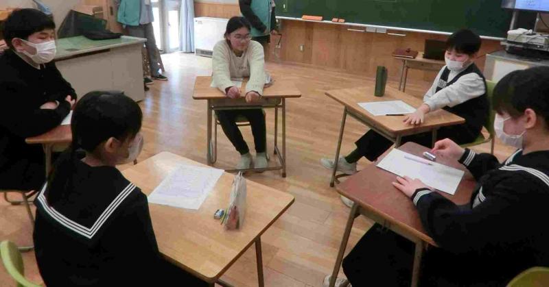 「テストや部活の試合でとても緊張します。」という児童生徒の声があったことから、今日はスクールカウンセラーの富永先生に,緊張したときの対処方法を学びました。振り返りシートで自分のストレス反応をチェックし、ストレス対処について、どのようなことをしているかを、みんなでシェアしました。また、緊張の緩め方やリラクゼーションについて実際に体験しました。「緊張したときに、体・気持ち・考え・行動が変わってしまうことを学びました。」「今までは緊張をやわらげることだけを意識していたけれど、緊張は悪いことではなく、よいこともあると知ったので、これからは緊張をコントロールすることを意識していきたい。」などの感想がありました。