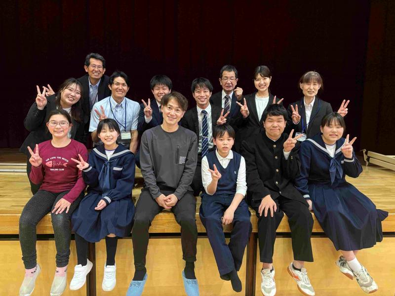 昼休みに、ふらっと一人の男性が学校を訪れました。オーラのある方だなと思っていたら、なんとナオトインティライミさんでした。体育館のピアノを弾きながら「未来」という曲を歌ってくださいました。ナオトインティライミさんは「被災地のみなさんのためにできることをしたい」ということで、この曲を演奏してくださいました。素敵な歌声に、みんな元気をもらいました。