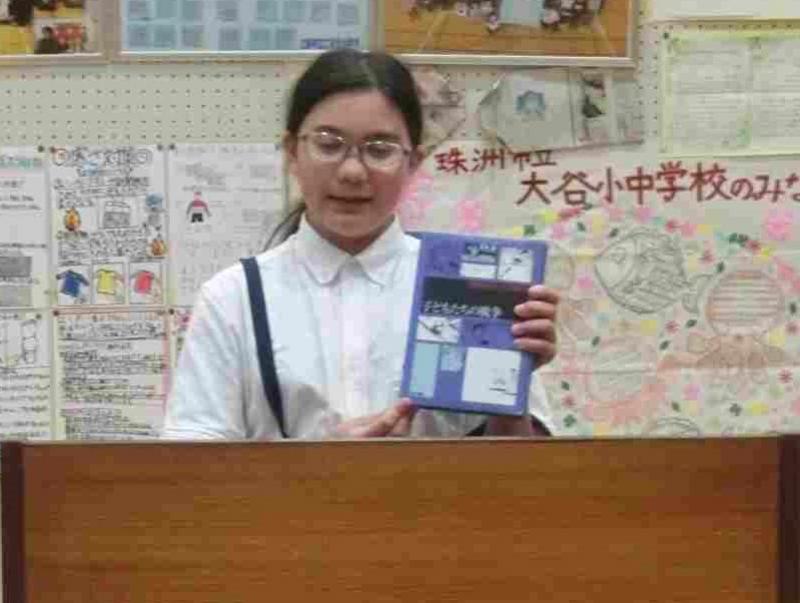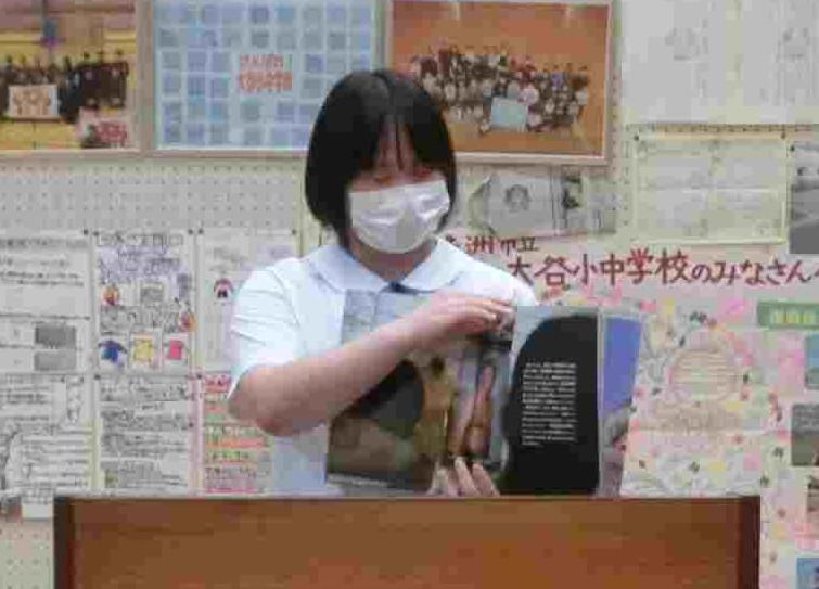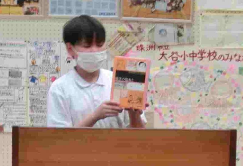 児童生徒会が考えた内容で、平和について考える集会を行いました。図書館司書の方に「ほたる」という絵本の読み聞かせをしていただきました。そのあと、児童生徒が一人ずつ平和に関する本の紹介をしました。本の内容はもちろん本を読んでの感想もしっかりと伝えることができました。最後の感想発表では「戦争は悪いしいけないことだと知っていたけれど、今日の集会では、なぜいけないのかなどをいろいろな方向から考えることができ、考えが深まりました。」という内容の発表がありました。