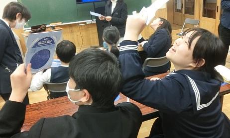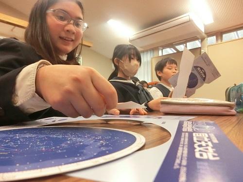 国立天文台天文情報センターの方々をお迎えし、宇宙についてのお話を聞きました。また、夜空を眺め、自分の目で星を見つけることができるように星座版を作成しました。作成しながら「星座版で、星を見つけたことないんだ。」という児童生徒のつぶやきに対して「見つけた時の感動はすごいよ。ぜひ見てほしいです。」声をかけてもらいました。