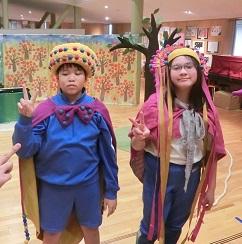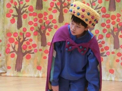 今日は、舞台芸術等総合支援事業として、演劇集団「円」の方々が来校されました。午前中は前期課程の2人とワークショップを行い、劇中のセリフなどを考え、練習しました。午後は、前期課程も出演し「おばけりんご」の公演が行われました。地域の方々も一緒に観劇をし、楽しい時間を過ごすことができました。前期課程の2人の演技も素晴らしかったです。