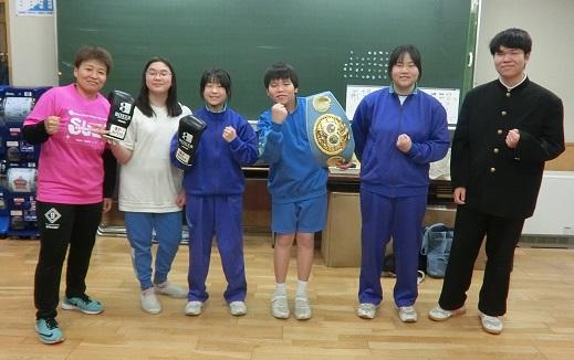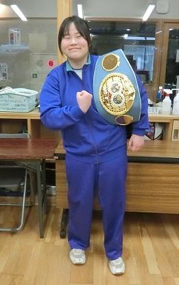 IBF女子世界アトム級王者。第2代及び第4代OPBF女子東洋太平洋ミニフライ級王者の花形冴美さんが来校されました。ご自身の経験を語り、夢を実現させるために必要な3つの大切なこと「自分を口に出して言うこと」「失敗をおそれずチャレンジすること」「あきらめずに続けること」を話してくださいました。また、実際にボクシンググローブを付けての実践やチャンピョンベルトを見せてくださいました。