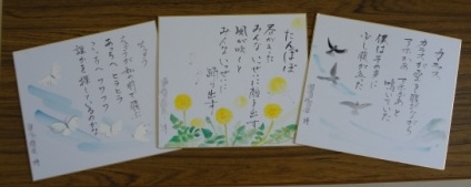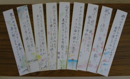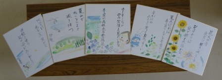スクールカウンセラーの先生が生徒の俳句・短歌作品に絵をつけて、一人ひとりにプレゼントしてくださいました。