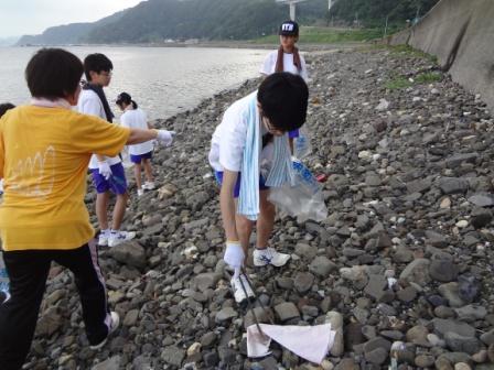 大谷中学校下の海岸のごみ拾いをしました。