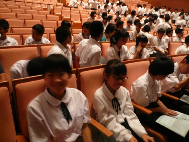 ラポルトすずで嘉門達夫氏の講演会がありました。全校生徒がバスで会場へ向かい、楽しんできたようです。