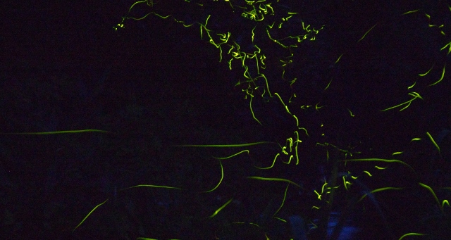 夏の風物詩ホタルの発生が,今は最盛期です。珠洲市でも上黒丸から町野へ抜ける途中の北山地区で観察することができます。木々にクリスマスツリーの点滅のように、短い生涯を仲間を求めて淡い光を放ちながら飛び交っています。発光のリズムで、ゲンジボタルかヘイケボタルの見分けが出来ます。画像でどちらか判断できれば,なかなかのホタル通です。!夜間の外出は難しいでしょが、画像でお楽しみ下さい。(撮影:6/30 Pm8:30 長時間露光)