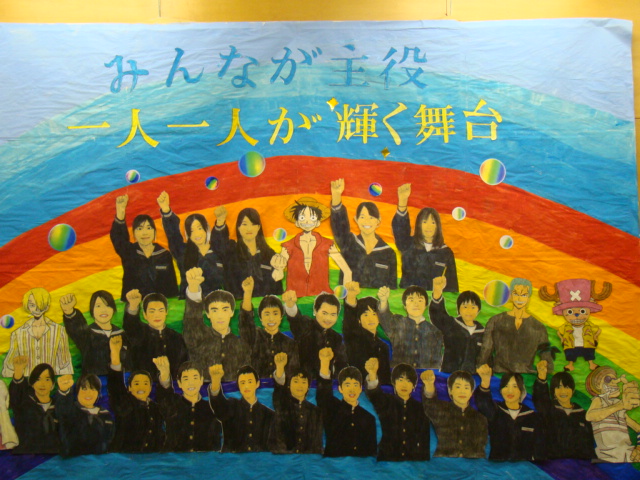 みんなで創り上げた文化祭が終了しました。最後は作った壁画の前で記念写真を撮りました。参加したすべての者に記憶に残る文化祭でした。