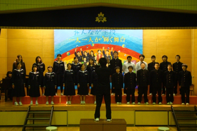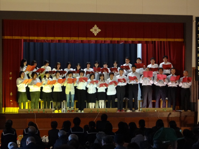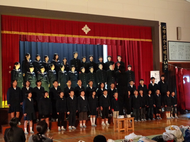西部小学校で3日に行った生徒の合奏&合唱・PTA合唱を、地区の皆さんの前で披露してきました。初めて行った小学生との合同合唱。大きすぎる小学生の合唱に中学生の声はかき消されていましたが元気さは披露できたようでした。PTA合唱も前日にもまして力のこもった合唱でした。2日間、本当にご苦労様でした。