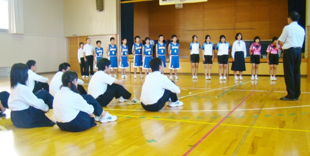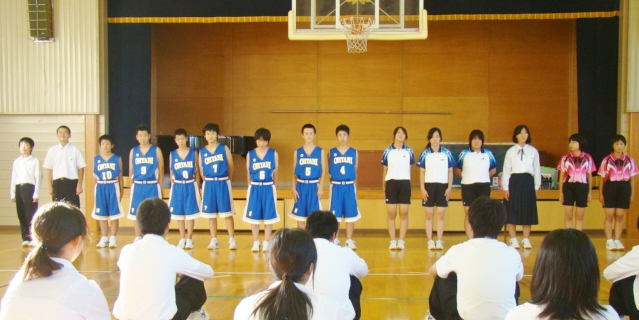明日6日、穴水で卓球の新人戦が行われます。20日は輪島でバスケットの新人戦が行われます。緊張する1,2年生に3年生全員で激励会を開催しました。温かなまなざしの中、体育館に応援歌が響き渡りました。