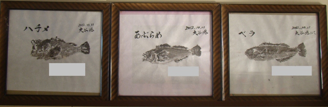 昨日のアブラメ釣り大会の上位入賞者の釣った魚の「魚拓」が生徒玄関前に、1年間飾られます。今年の魚拓も見事に仕上がりました。