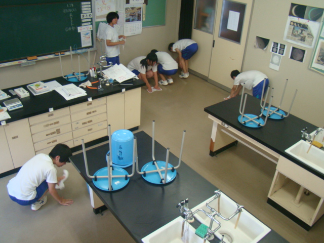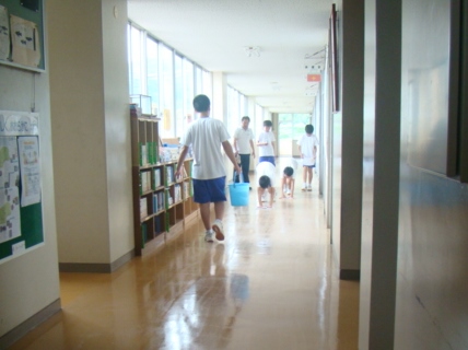 1学期も残すところあと数日です。午後から2階廊下と理科室のワックスがけを行いました。
