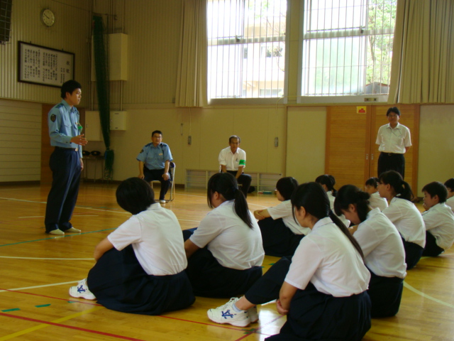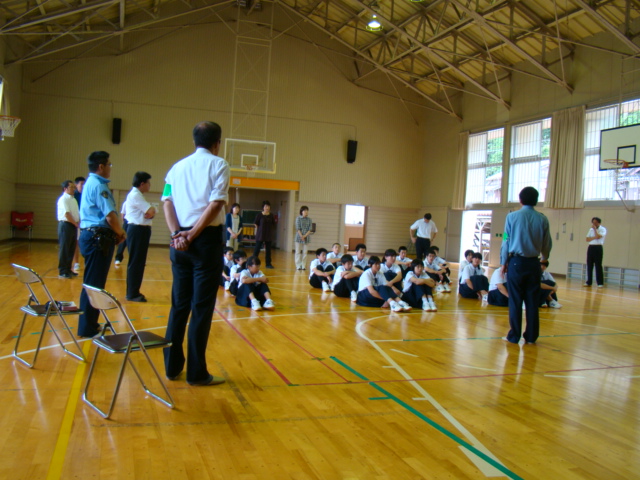 夏休みを直前にした今日、珠洲署の方から3名の方に来ていただいて防犯教室を実施しました。不審者対応やネットトラブルの対処法、襲われたときの護身術等を実際に体験しながら講演していただきました。明日からの夏休み、事件事故に巻き込まれないように有意義な夏休みを過ごして下さい。