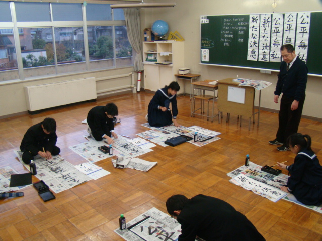 新学期スタート(書き初め大会)