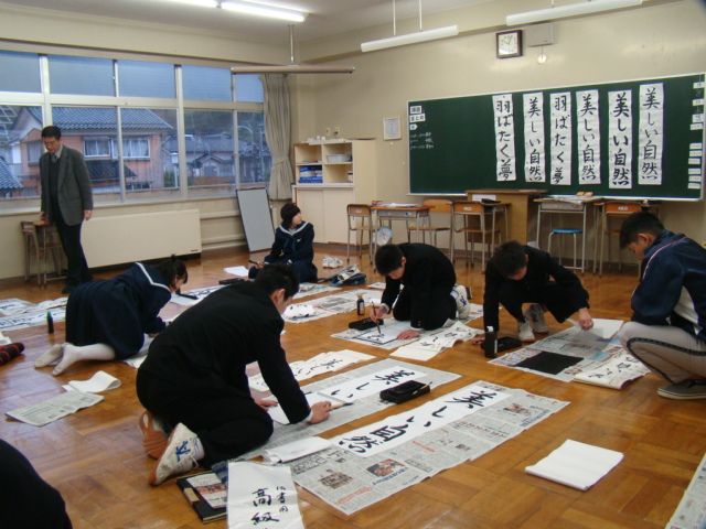 全員元気に登校してきました。3学期恒例の書き初め大会が各教室で行われました。それぞれの学年で決まったテーマに挑戦です。自宅での練習の成果が出るといいですね。