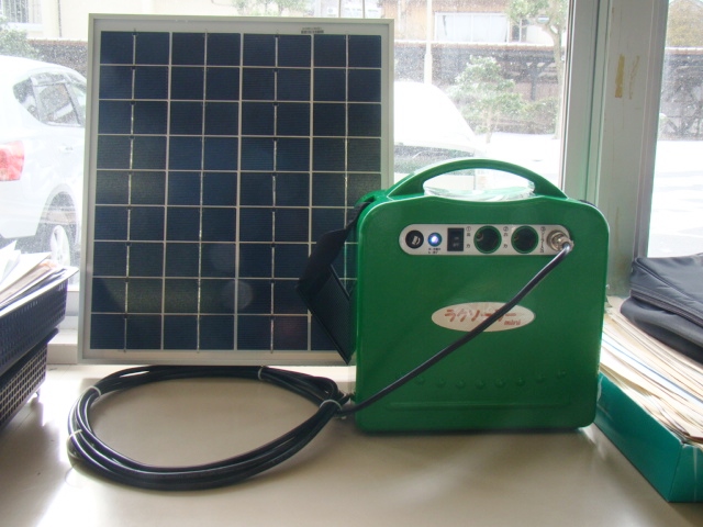 昨年の12月25日、県庁で表彰式があり、副賞のソーラー発電&蓄電器が届けられました。