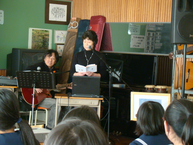 スプールの会の方が読み聞かせを行ってくれました。最後は校歌を歌ってお返ししました。