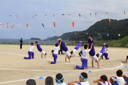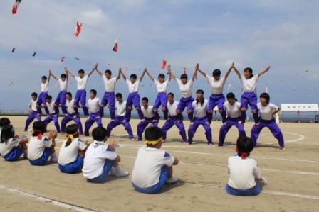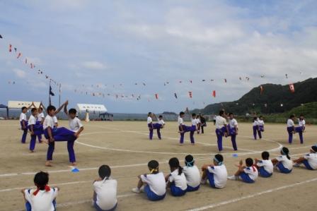 夏休み中から運動会の練習をしていましたが、今日から小中合同練習も始まりました。