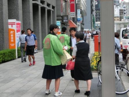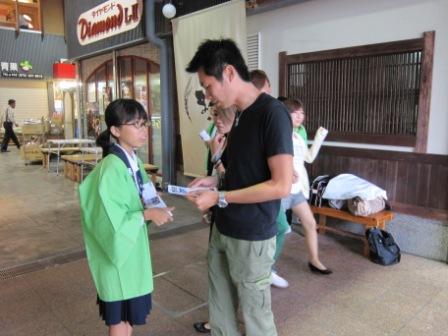 2年生は、尾山神社を見学し、近江町市場で塩のPR活動をしました。