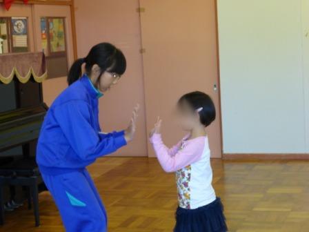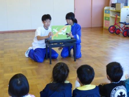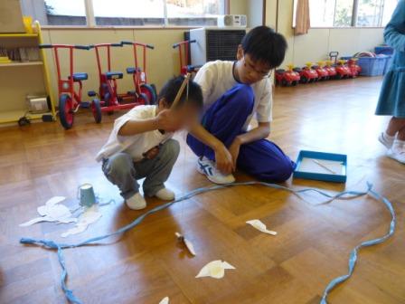 家庭科の授業でつくったおもちゃを持って、大谷保育所の園児と交流してきました。