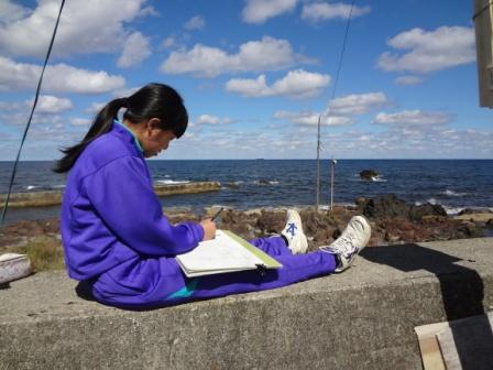 とても良いお天気の中、それぞれが選んだ場所で写生に取り組みました。