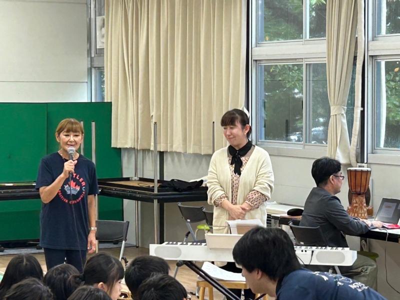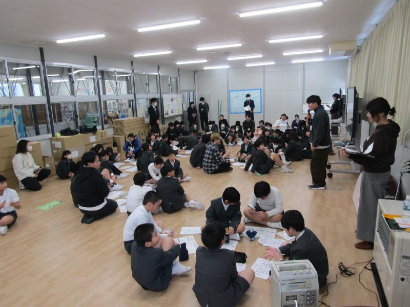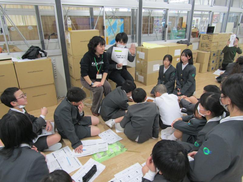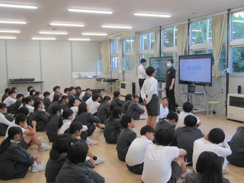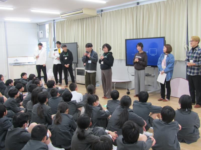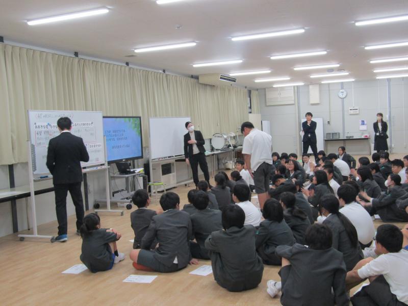 落語や曲芸の後、輪島市出身の豊田さんを中心にキャリア教育を実施しました。