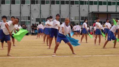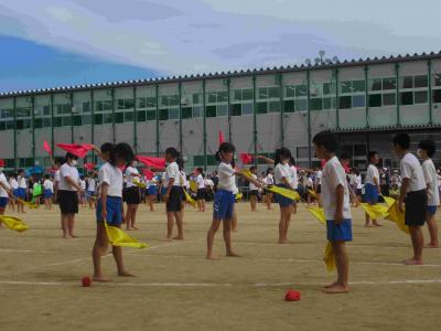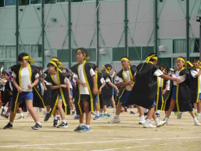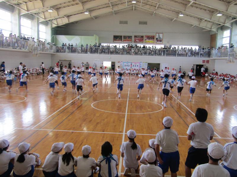 3年生主催の6小三夜踊りを開催しました。保存会、保護者や地域の方の参加がありました。他の学年の児童も唄や囃子につられ、一緒に輪になりました。