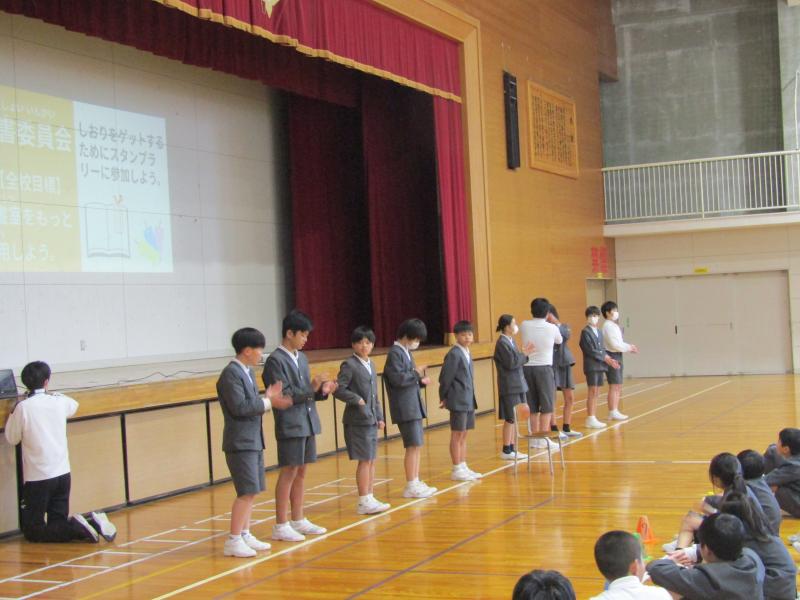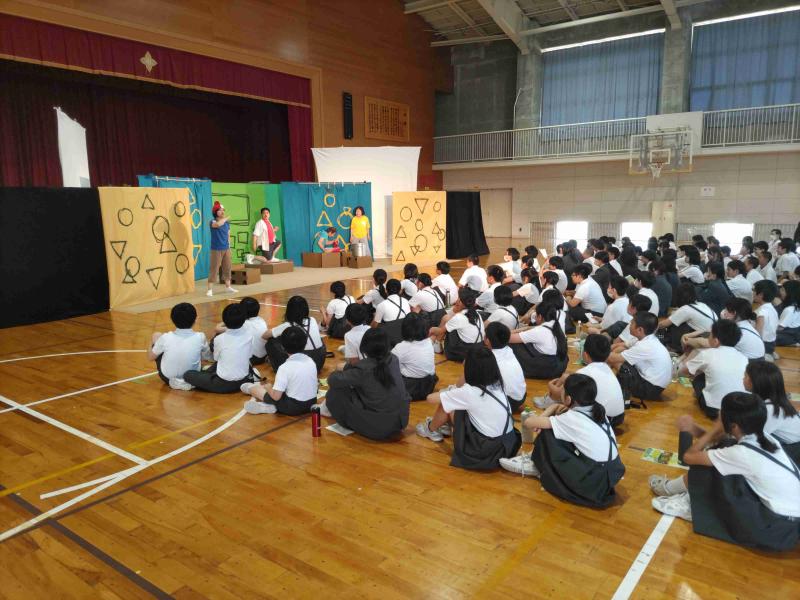 6月19日、市内の5.6年生が河井小学校体育館に集まり、「劇団仲間」の「給食番長」を観劇しました。ユーモアあり、考えさせられる場面があり、笑いと笑顔がありました。