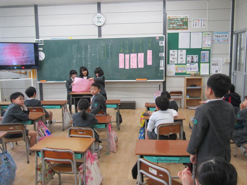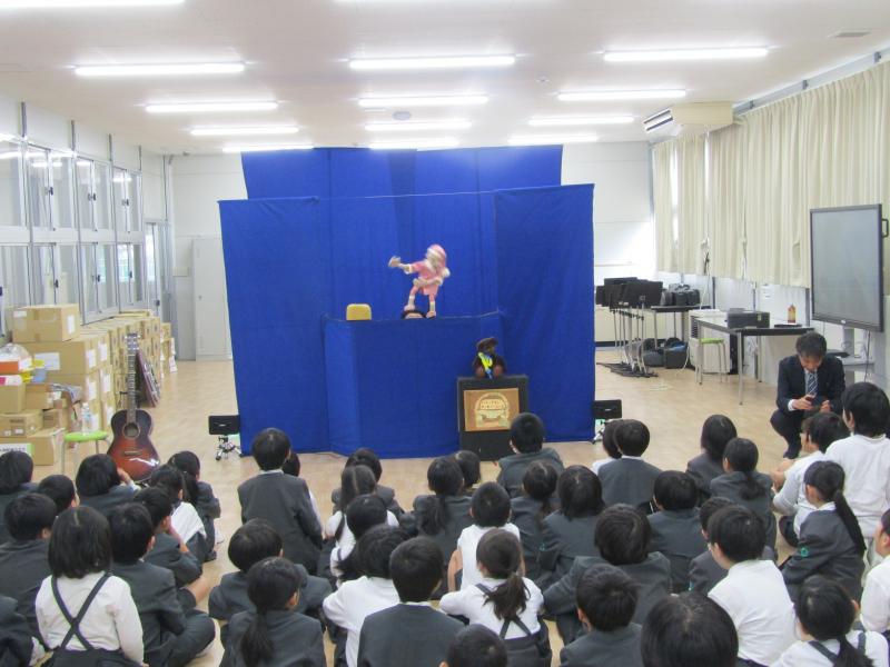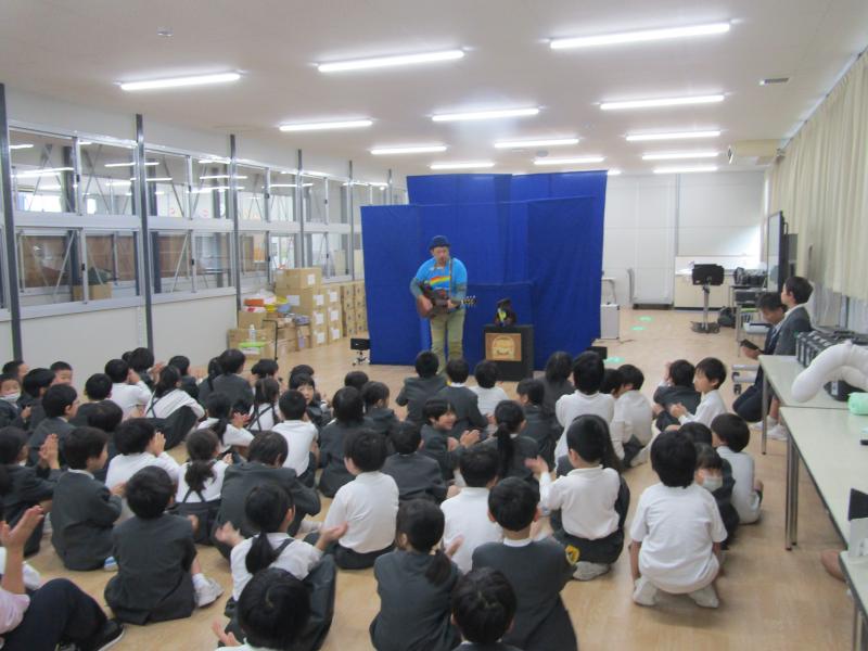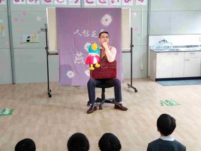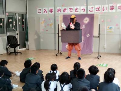 4月、松本に拠点がある、人形芝居燕屋のくすのき燕さんが、ご支援で来校され、人形芝居「ねずみのすもう」を1年生で感激しました。また、「カンクロー」の腹話術もあり、子どもたちの大きな笑い声と笑顔が溢れました。
