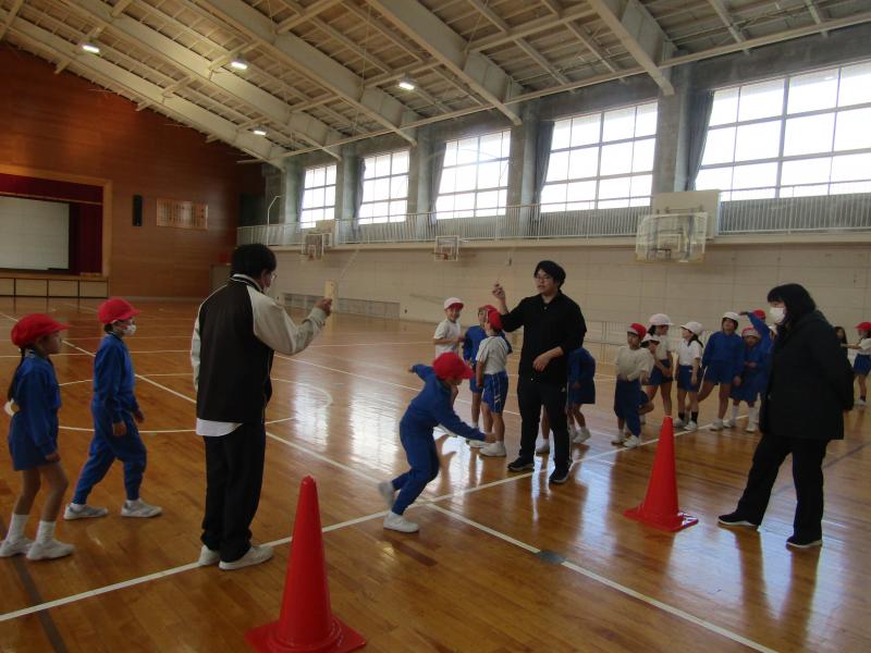 本日は、幼児の皆さんと4年生が交流し、指導員の指導により一緒に楽しみました。