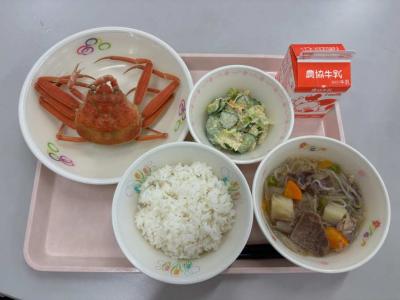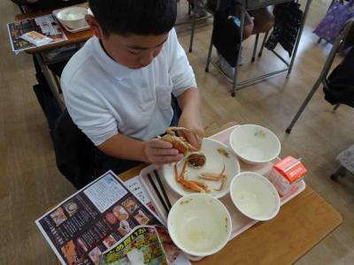 香箱カニが6年生の給食に登場しました。