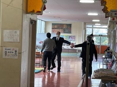 輪島署の協力を得て、不審者対応訓練を行い、不審者への教職員の対応、児童の避難行動を実際に行いました。
