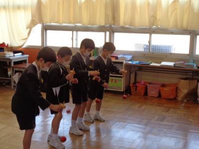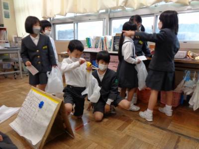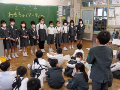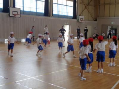 1年生が2年生を招待しました。自分たちの考えたゲームで楽しんでもらいました。