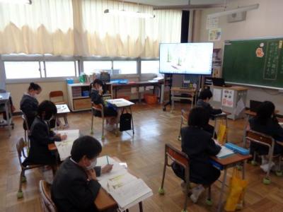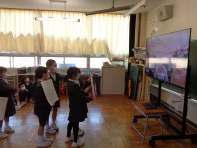 3年生が、百寿苑のみなさんとオンラインで交流会を行いました。