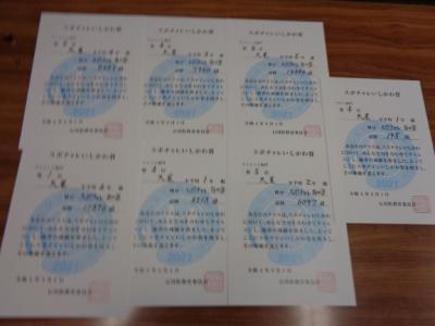 1位 メダル 表彰状 2~3位 表彰状 全員 記録証