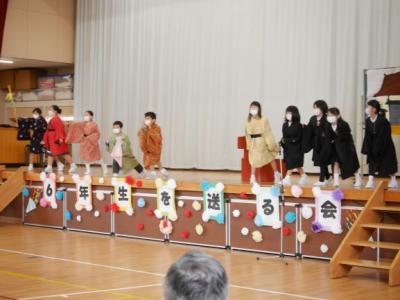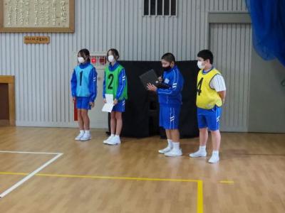 大屋っ子タイムで、6年生がいじめをゆるさない集会を主催し、