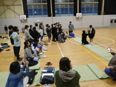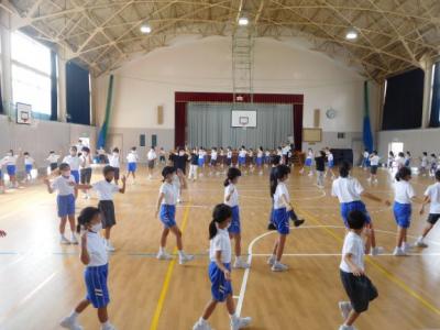 輪島市教育委員会の谷内さんと、5年生がスピードウォーク練習を行いました。