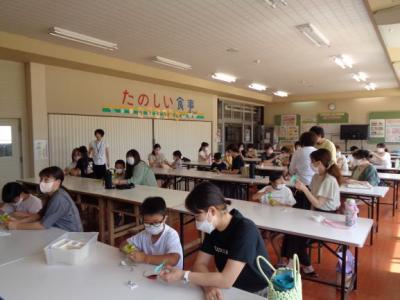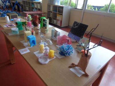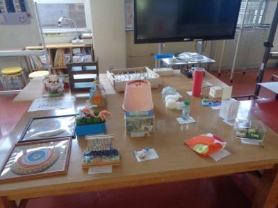 子どもたちが夏休みに取り組んだ、自由研究・工作などが展示されています。