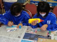 輪島塗パネルに沈金をしました。輪島らしい活動です。