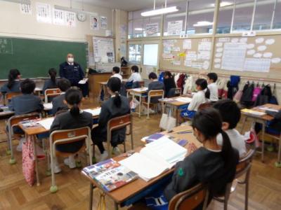 大屋交番の警察官をゲストティーチャーに、社会科で学びました。